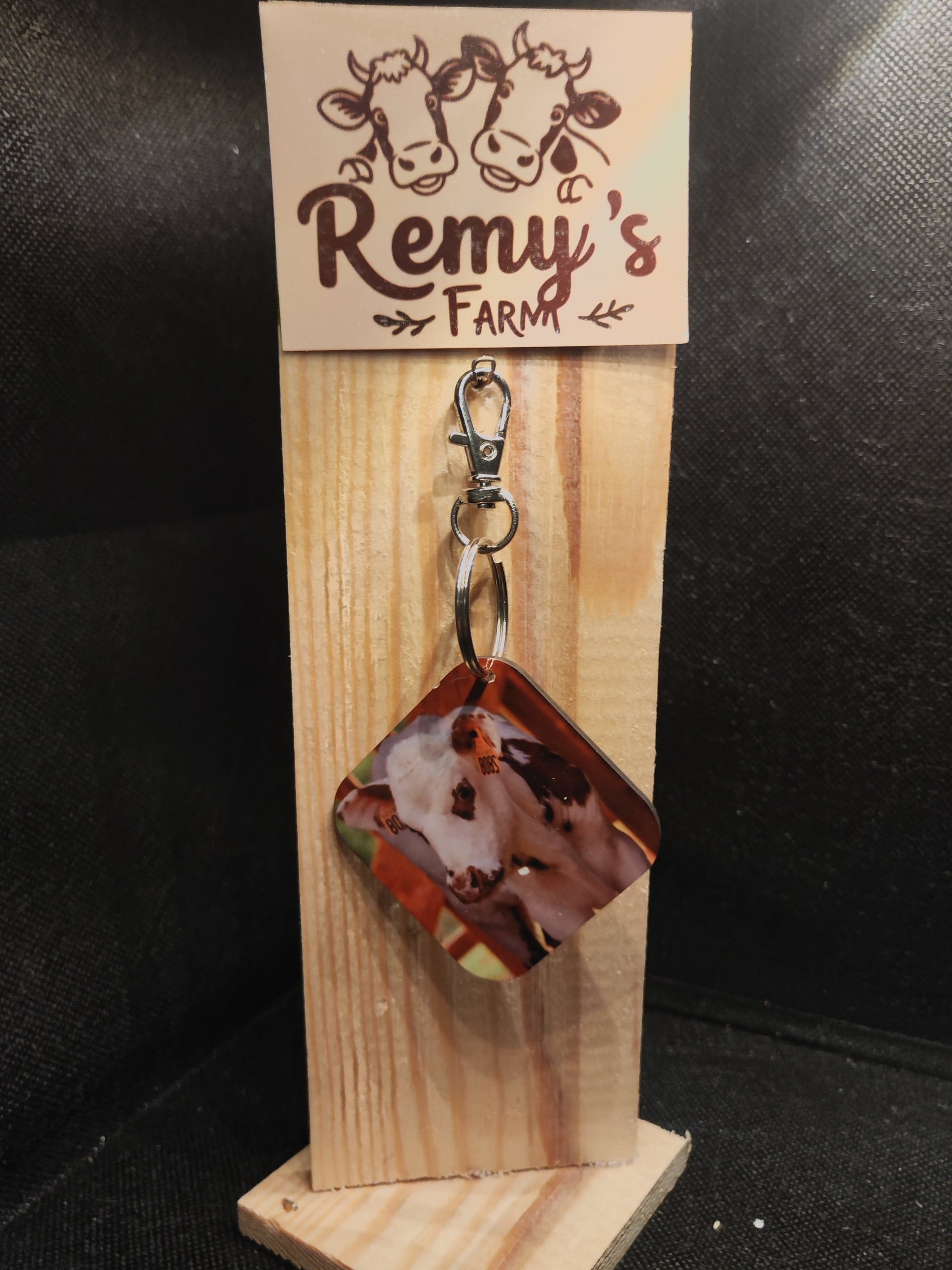 Porte-clé en bois carré avec une vache 🐄✨🔑